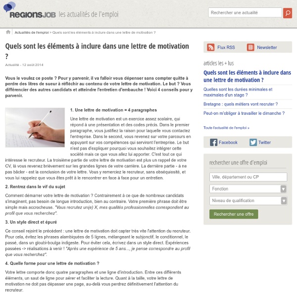En plus d'exposer ses compétences, surtout celles nécessaires pour l'exercice du poste pour lequel vous rédigez la lettre de motivation, il faut démontrer que vous ne. A l'hôpital, dans un établissement médico-social ou dans toute autre structure, les infirmières et les infirmiers ont des opportunités d'embauche variées. L'avis de Florent Algier, chargé de recrutement chez Fives « La première chose que l'on remarque à la vue de cette lettre, est que la mise en page est agréable, car aérée.